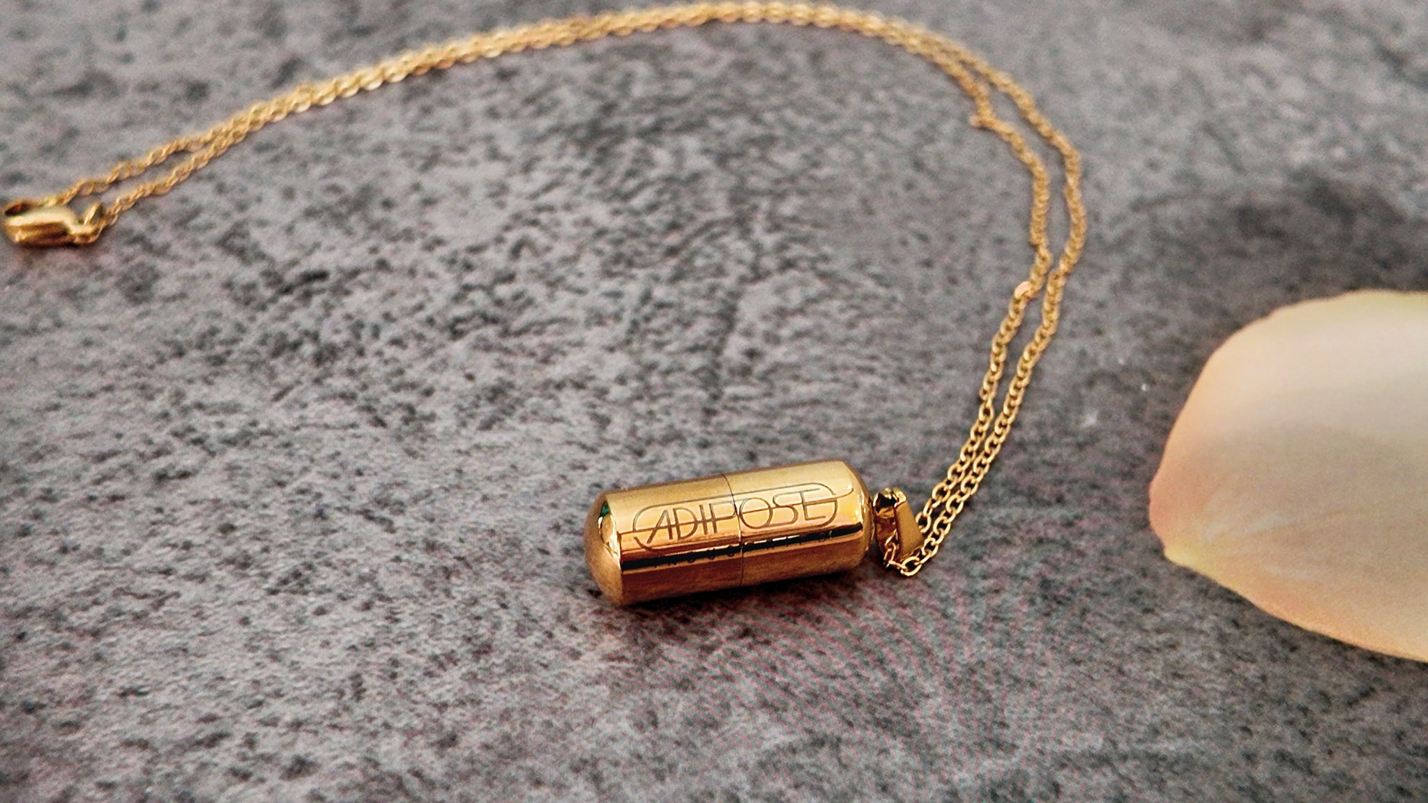 A faithfully recreated prop of Miss Foster's pendant, famously known as the 'Adipose Pendant', or the 'Advance Weightloss Systen With 21 Capsules'.